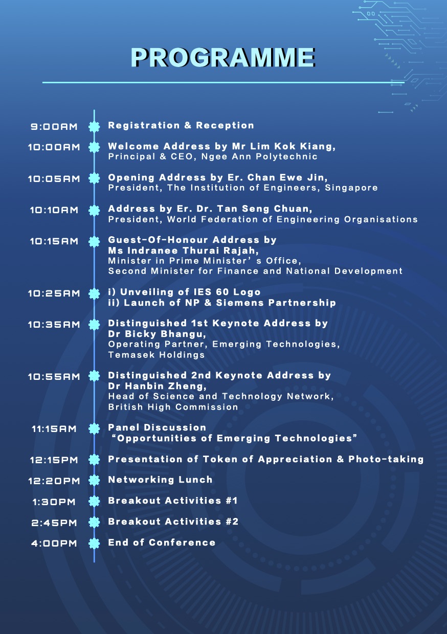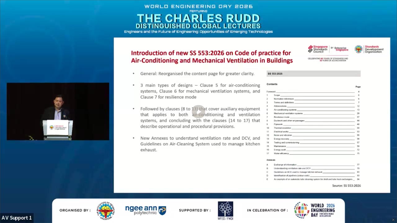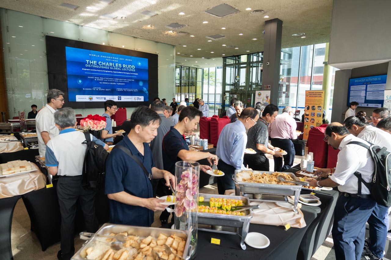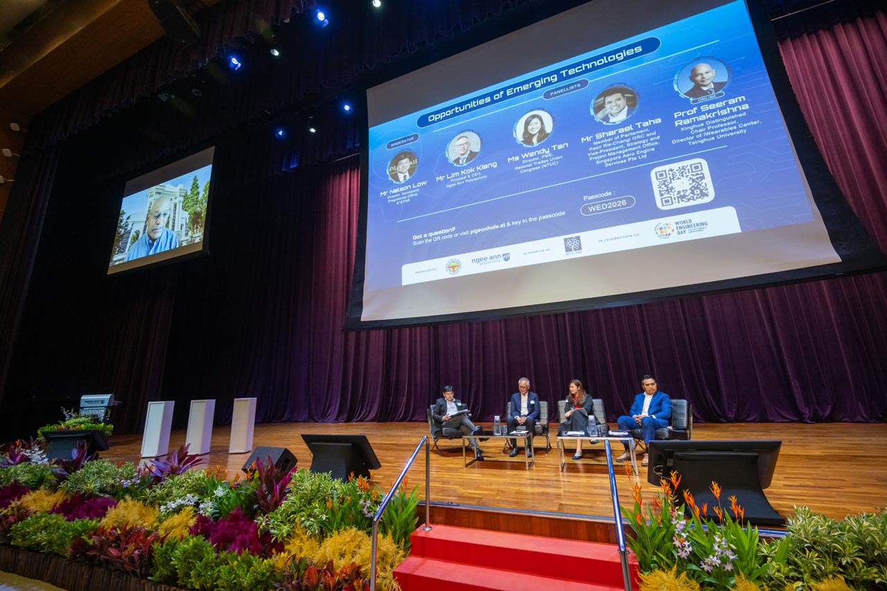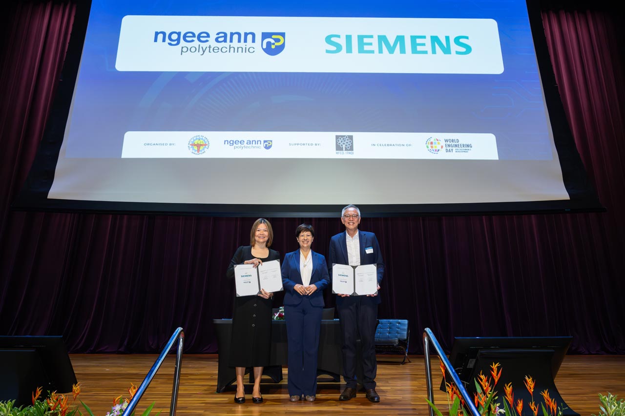 In celebration of UNESCO’s Declaration of the World Engineering Day (WED), the Institute of Engineers Singapore (IES) and Ngee Ann Polytechnic (NP) partnered to organise World Engineering Day 2026: Charles Rudd Distinguished Global Lecture (WED 2026: CRDGL). This annual event aims to promote a greater appreciation of engineering, honouring the late Er. Charles Rudd. WED 2026: CRDGL provides a platform for leading engineers, innovators and thought leaders to exchange insights and ideas within the industry. This event features a three-hour hybrid lecture, drawing hundreds of local and overseas participants, with event highlights being recorded and broadcasted globally to celebrate engineering achievements. Participants had the opportunity to attend keynote speeches and panel discussions with fellow industry professionals to gain practical insights into how engineering could contribute to creating a more prosperous world. Significant proceedings included the launch of the IES 60 logo and an MOU signing between Ngee Ann Polytechnic and Siemens, witnessed by Ms. Indranee Rajah, to drive the SkillsFuture Queen Bee initiative forward.