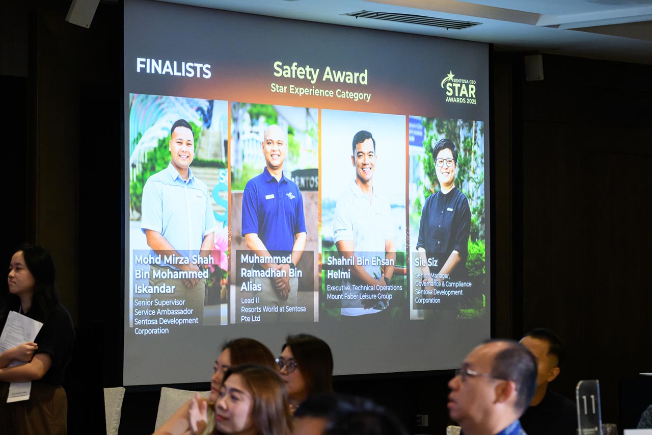 The Star Collaboration Award recognises and appreciates the invaluable partnerships within Sentosa. The Star Resilience Award is presented to individuals who have made significant contributions to maintaining Sentosa as an enjoyable yet secure destination for visitors. The Workplace Safety & Health Award is conferred both as an individual and team recognition to those who have performed well in safety and health by implementing sound safety and health management systems.