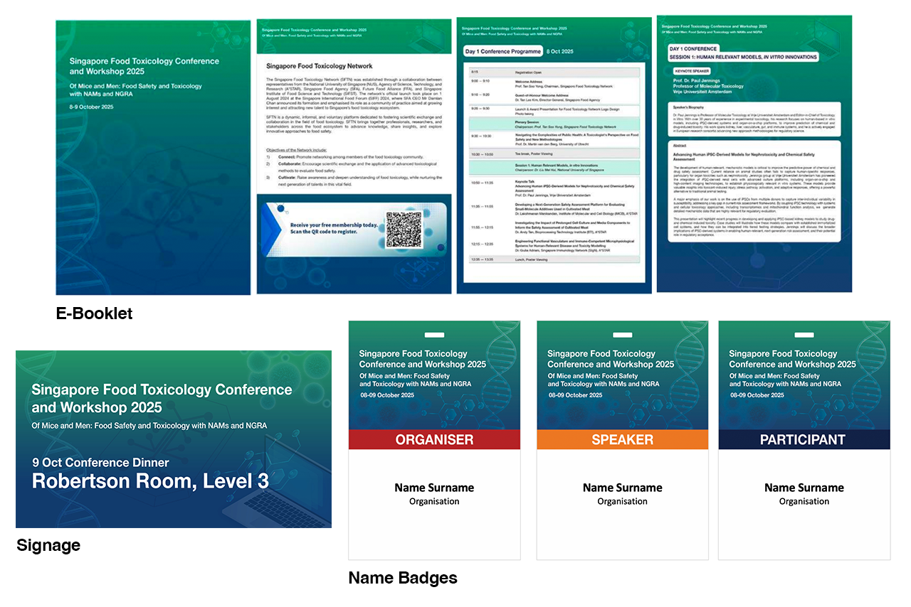 - Adaptation of overall thematic design to onsite event collaterals including but not limited to holding slides, digital programme booklet, name badge, lanyard, electronic direct mailers (eDMs)